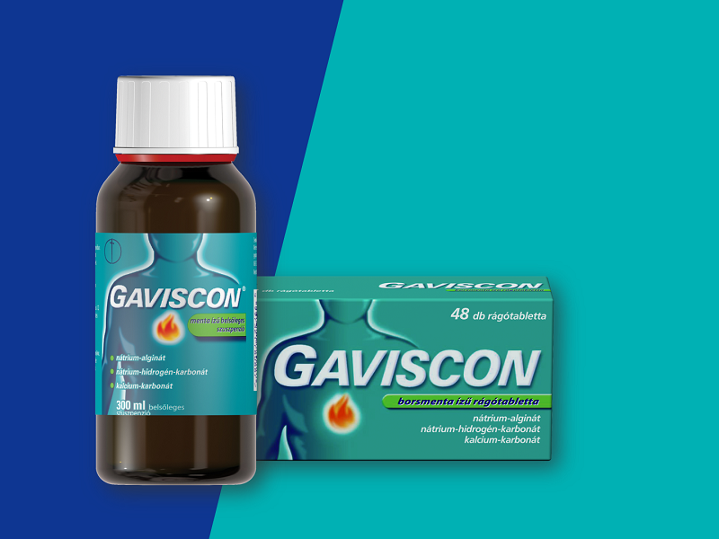A Gaviscon borsmenta ízű rágótabletta pedig víz nélkül is könnyedén bevehető.